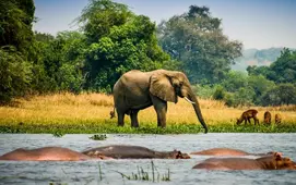 Queen Elizabeth National Park, located in western Uganda, is one of the country's most popular parks, known for its diverse ecosystems and abundant wildlife. The park features rolling savannah, lush forests, sparkling lakes, and the famous Kazinga Channel. On your tour, you can also see elephants, hippos, and tree-climbing lions.
